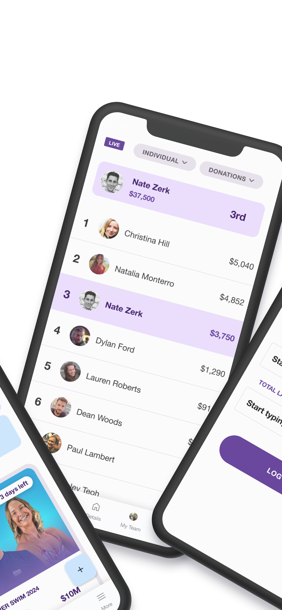 - View your activity and fundraising rank as well as individual and team a leaderboards