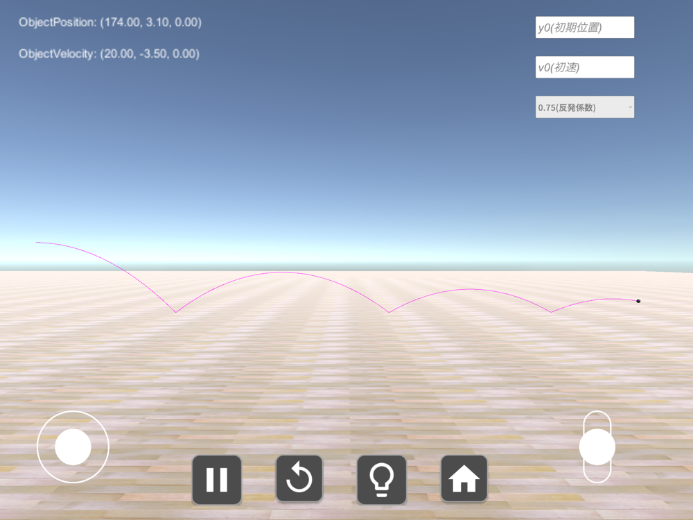 In each experiment, you can freely change parameters such as initial velocity and bounce coefficient! Please use this app to improve your performance!