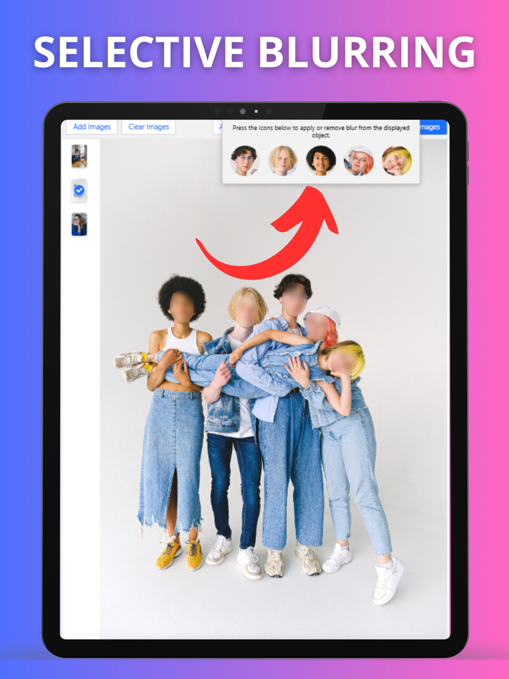 • Selective Blurring: Choose which faces to keep unblurred, allowing you to maintain the privacy of those you want to protect.