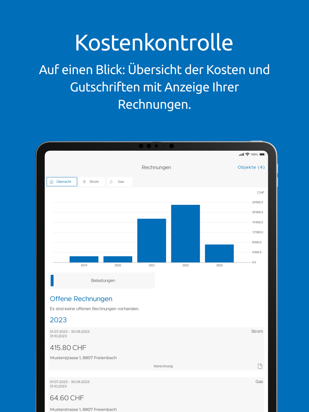 Erhalten Sie volle Einsicht in Ihren Energiehaushalt und Ihre Energieabrechnungen. Was Ihnen die EW Höfe Kundenportal-App bietet: