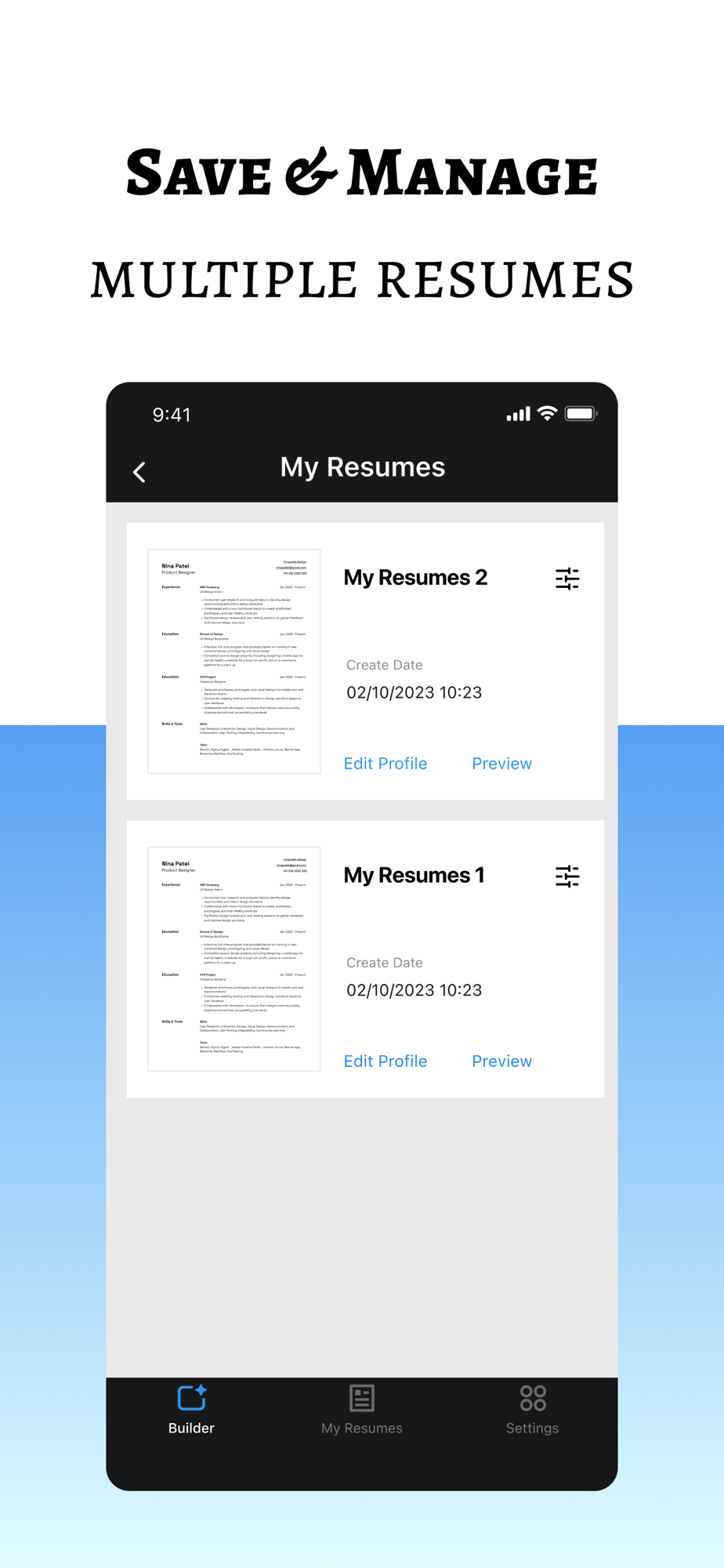 Apply for different roles or companies? No problem! With our app, you can effortlessly save and manage various resumes tailored to each unique opportunity. Maximize your chances of landing an interview!