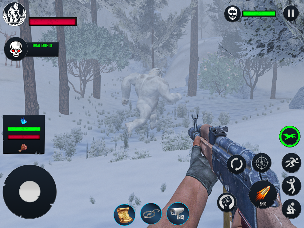 Enjoy the role of a fearless hunter who ventures into the jungle in hunt of a complicated monster. You might have heard stories of how many people who got lost in the jungle were not found. Many of the people that went in quest of bigfoot in the aftermath simply disappeared. You predicted that this travel would be dangerous, so you prepared for it. Play as a bigfoot hunter in a horror survival action game to track down monsters and have an exciting hero survival game experience.