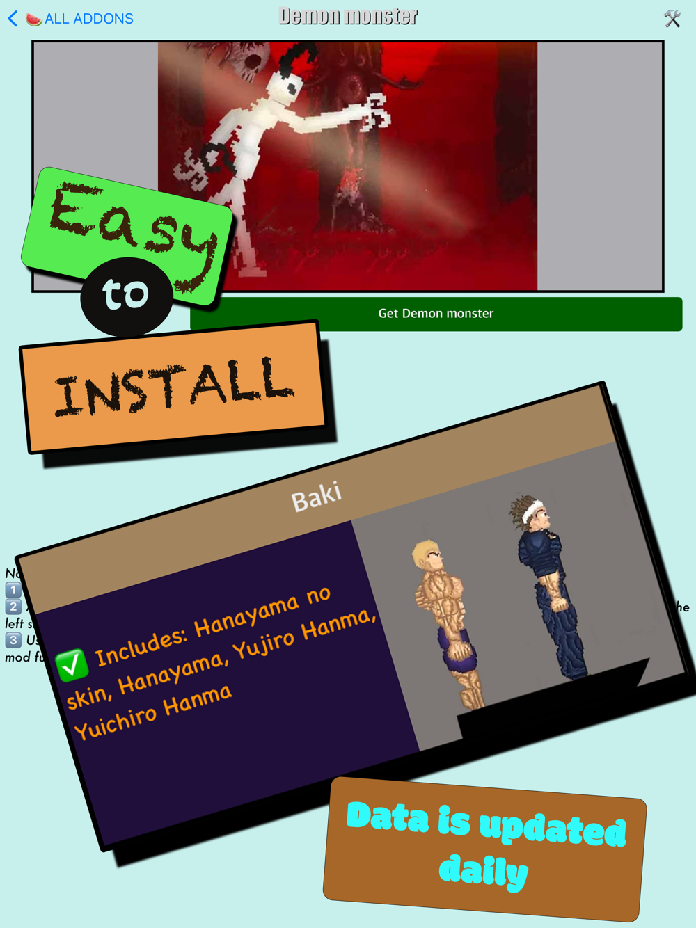 You can find all popular mods like: robot, anime, tank, monster, horror, car and many others.