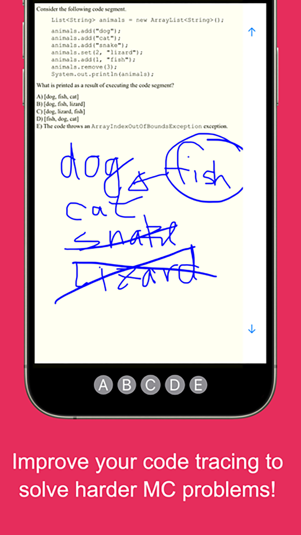 Fine-tune your ability to write java code for the AP Exam with 180 programming problems covering all 10 units of varying difficulties including useful common algorithms for the exam. Work through Multiple Choice questions including AP-Style problems as well as review published and publicly available ap exam problems.