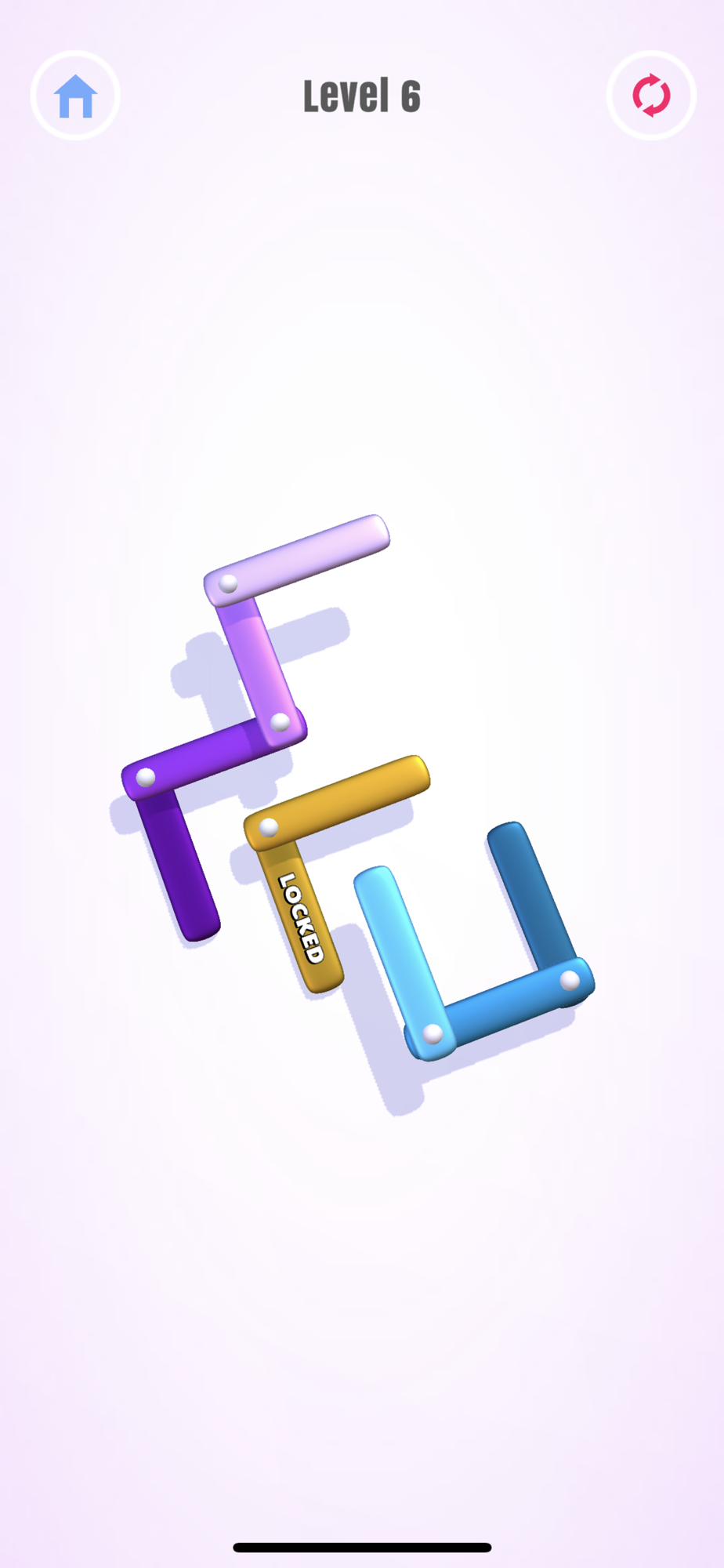 An interesting and colorful puzzle awaits you in Crunch Lock. The point is to collect all the colored keys. But first they need to be collected. The key consists of several parts with a movable connection. One part is motionless and it is on it that the remaining fragments need to be installed. Use the hinges to turn and when the key becomes compact, it will disappear and you will receive a star as a reward. First you will receive one key, then two, then three and so on. The levels will become more difficult. The unfolded keys are placed quite closely together and can interfere with assembly, so it is important to select the correct sequence in Crunch Lock.