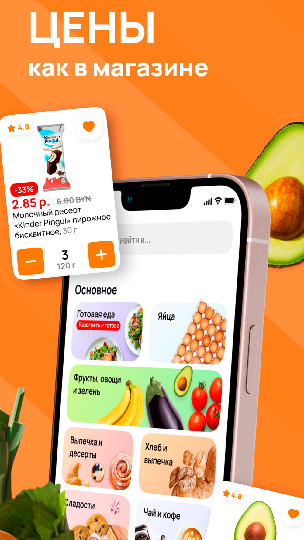 Загляните в наш каталог, там много интересного: готовая еда, овощи и фрукты, крупы, макароны и консервы, мясо и птица, замороженная еда, молоко, яйца и масло, мороженое, рыба и морепродукты, хлеб и выпечка, сыры, колбаса и сосиски, чай и кофе, товары для животных, товары для дома, пицца, продукты для веганов, вода и напитки, чипсы и многое другое.