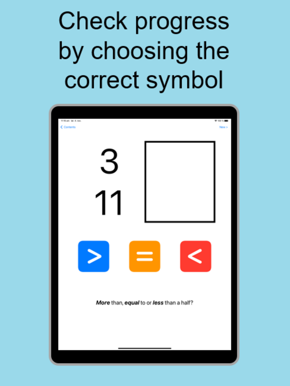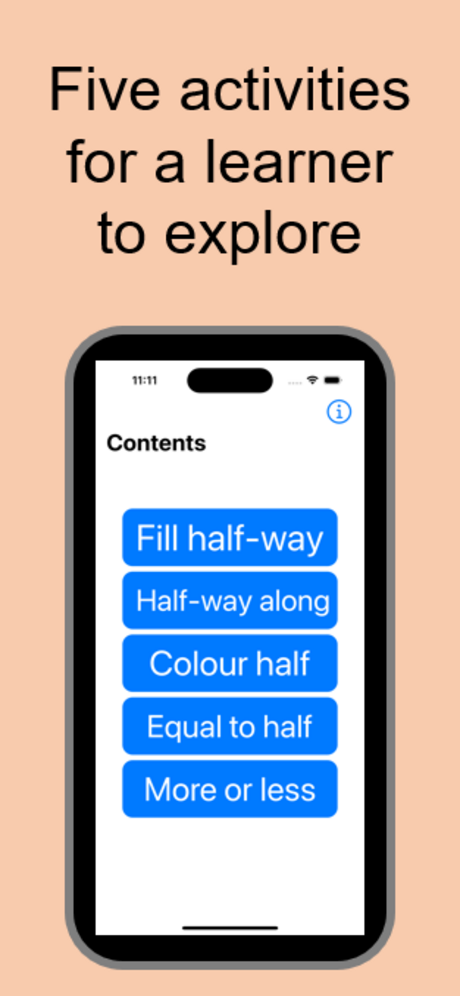 This app is designed to help parents/mentors support learners understand the basics of fractions by introducing the concept of a half in different contexts and with different visual representations. Learners are encouraged to explore the activities, for further details and suggestions for how the app may be used with learners visit the Capacitarpais: Maths for Parents website.
