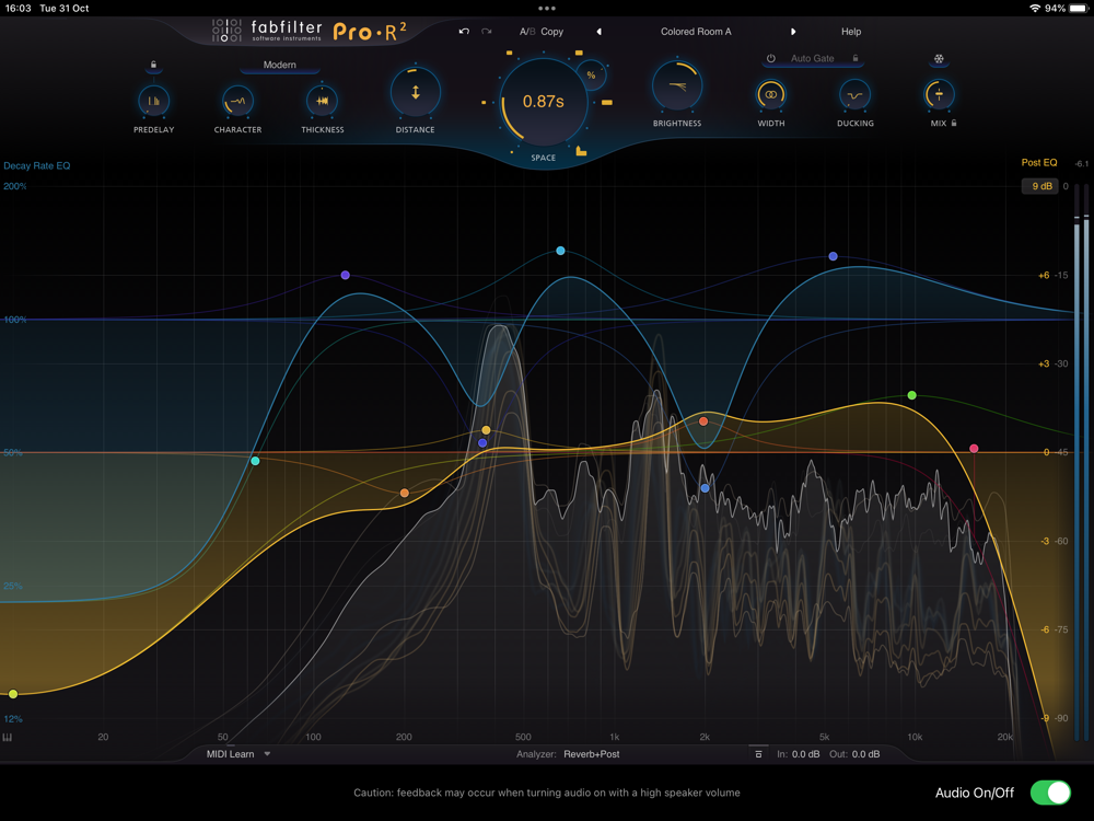 - Decay Rate control, changing the overall decay time from 25% to 400% of the current Space setting