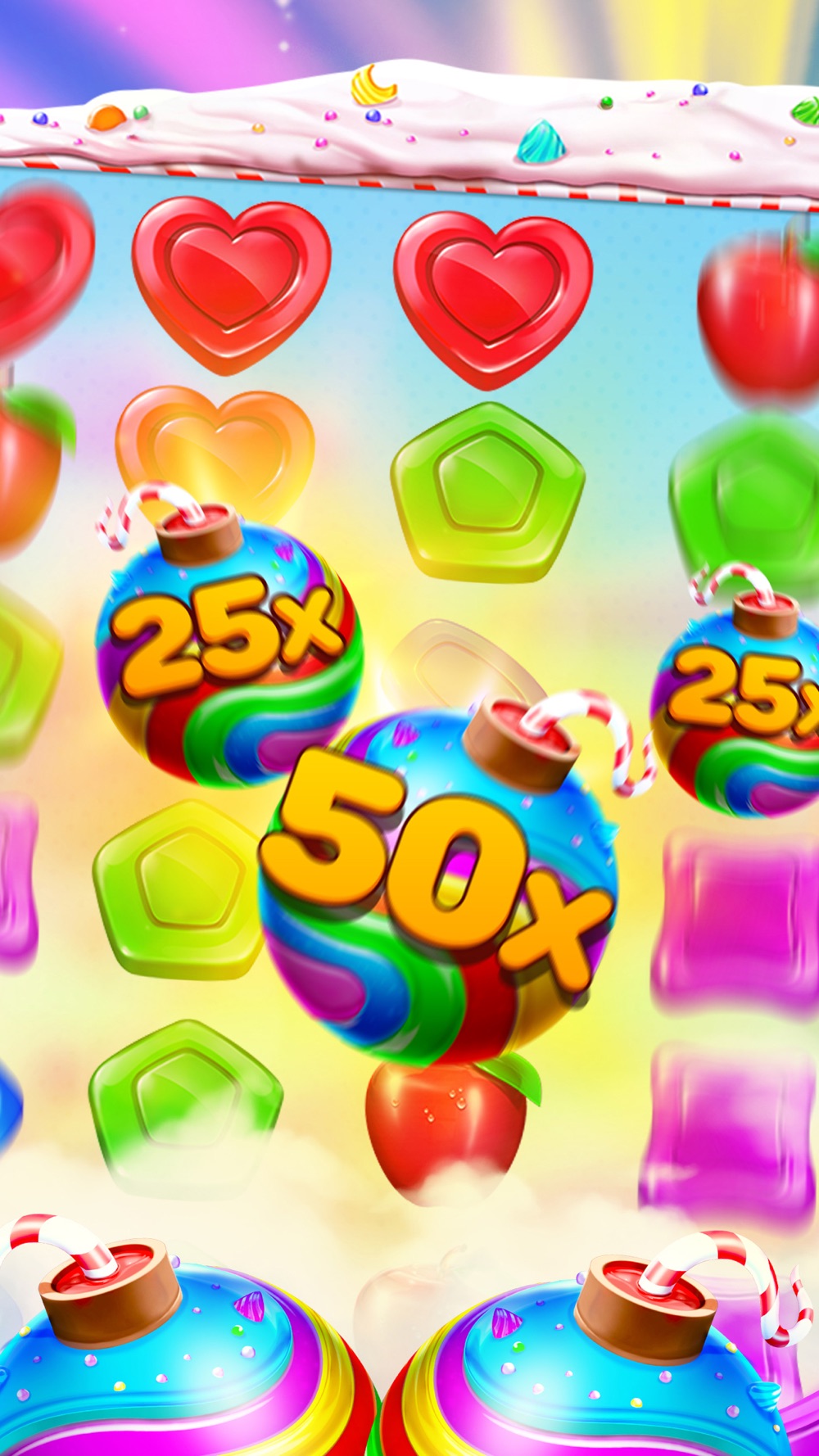 Dive into the whimsical world of 'Sweet Bonanza: Sugarland'! These adorable, vibrant, and squishy fruits and candies are here to challenge your brain in a unique puzzle game where strategy meets fun.
