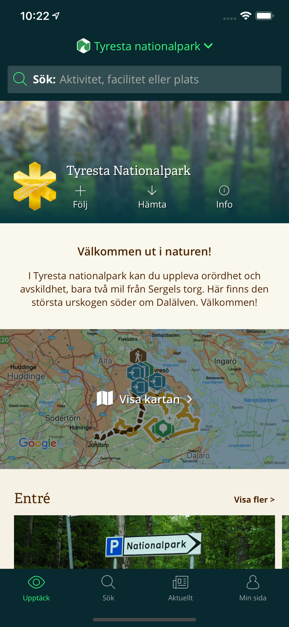 Naturguide till Tyresta nationalpark. Leder, entréer och viktiga platser presenteras med vackra bilder och beskrivande texter. Bli inspirerad inför ett besök i nationalparken eller ta appen till hjälp för att hitta till en ledstart eller en entré när du väl är i parken.