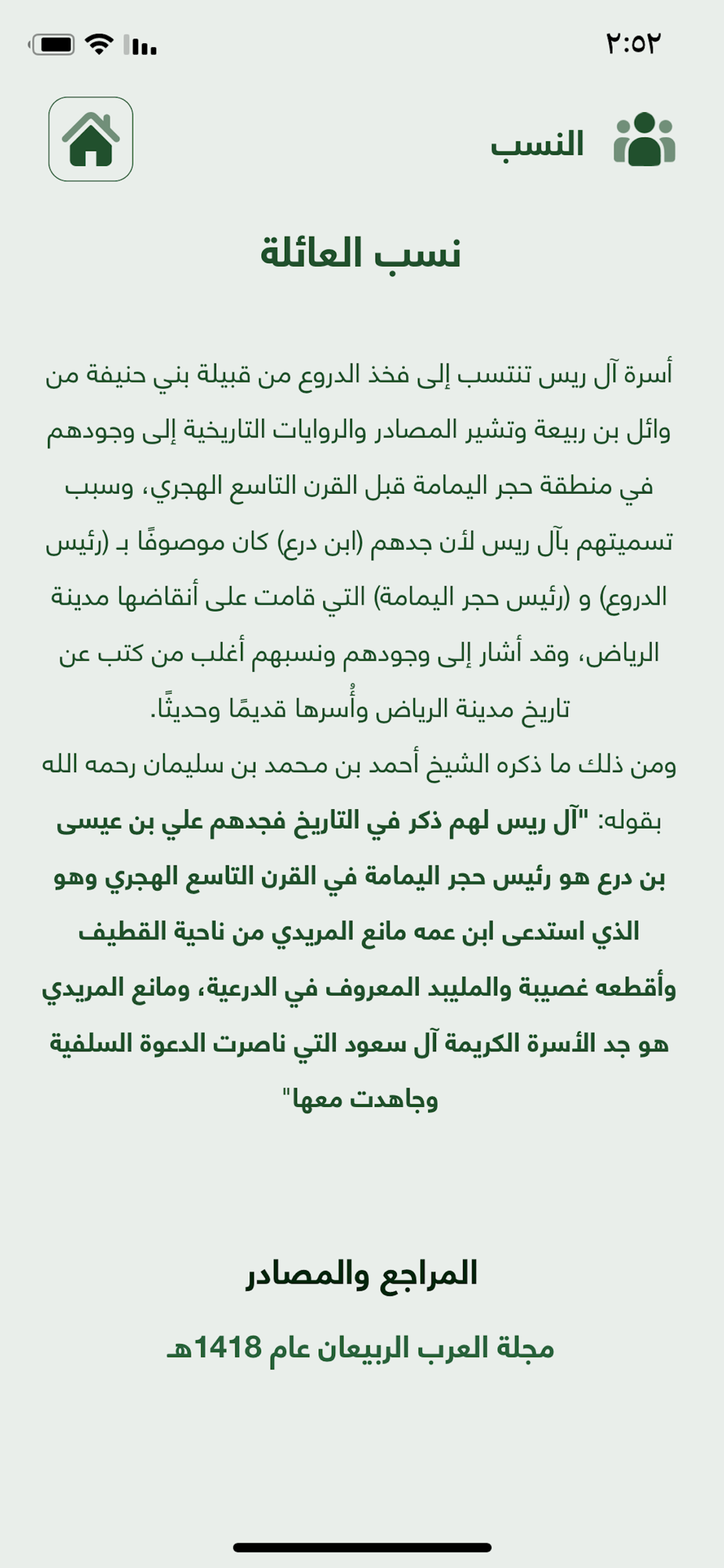 يقدم التطبيق للزائر معلومات موثقة وبعض الصور عن تاريخ الاسرة وموطنها وأبرز شخصياتها وهي معلومات لها اثر للجميع.