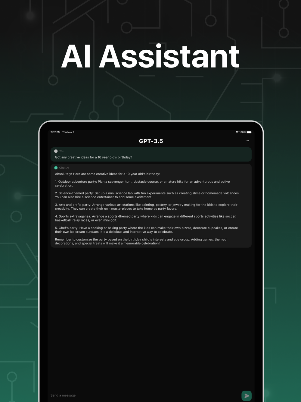 Our advanced app is like a treasure chest of knowledge. It can provide information on anything, whether it's history, science, math, or politics. You can start chatting about anything you like.