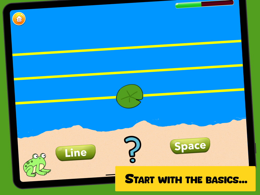 Young students and those just getting started can begin with lessons covering the very basics- line and space notes, up and down on the staff vs. up and down on the piano keyboard, and steps and skips. As you progress, you will be introduced to larger intervals up to an octave. As each new level is mastered, you have an opportunity to review it in practice mode and then ultimately be challenged in a fun and fast-paced game.