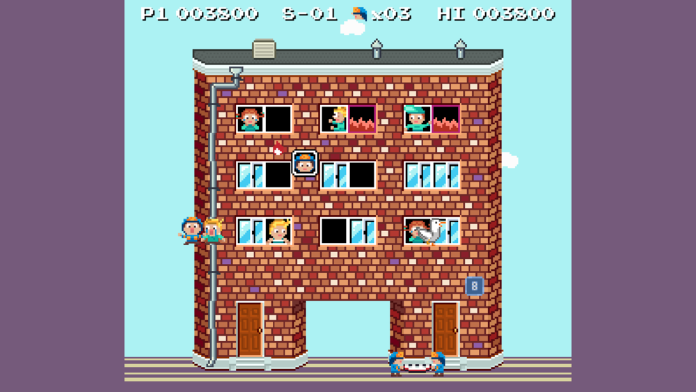 The game Flying Heroes or "Firemen" is a logical arcade platformer.