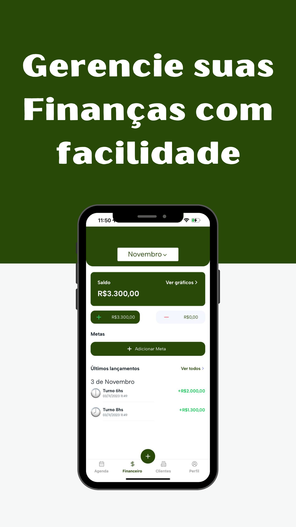 Uma das principais características do aplicativo é o "Agendamento", que permite visualizar e gerenciar sua agenda de compromissos. Você poderá registrar os horários de atendimento, datas e serviços agendados, garantindo que sua jornada seja organizada, evitando conflitos. Além disso, você receberá Lembretes de suas próximas agendas, para não perder nada!