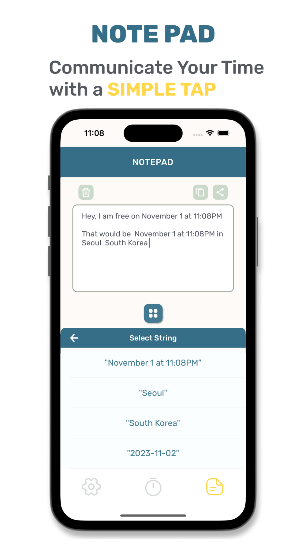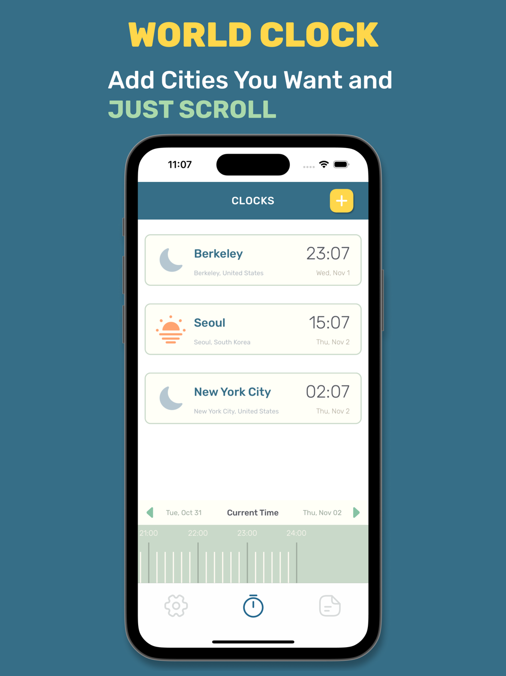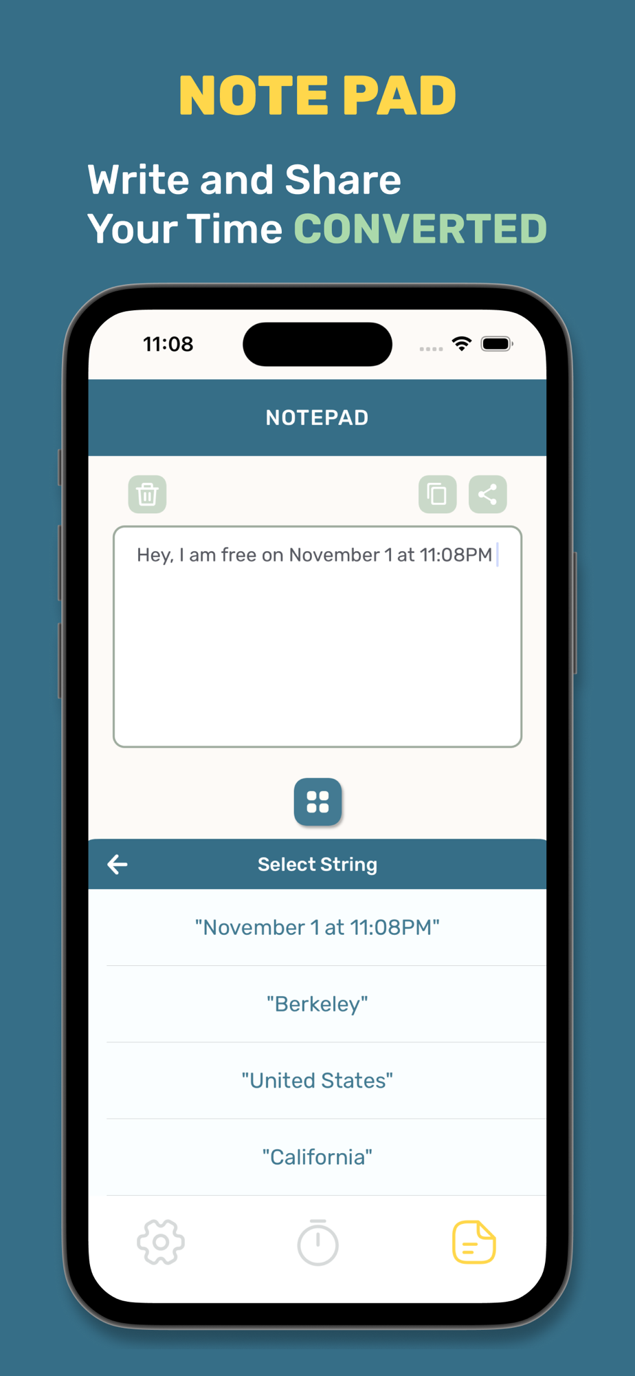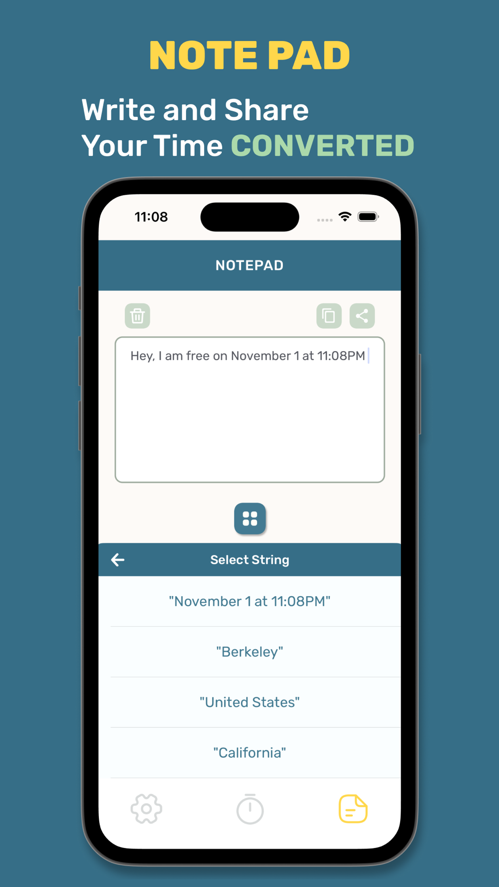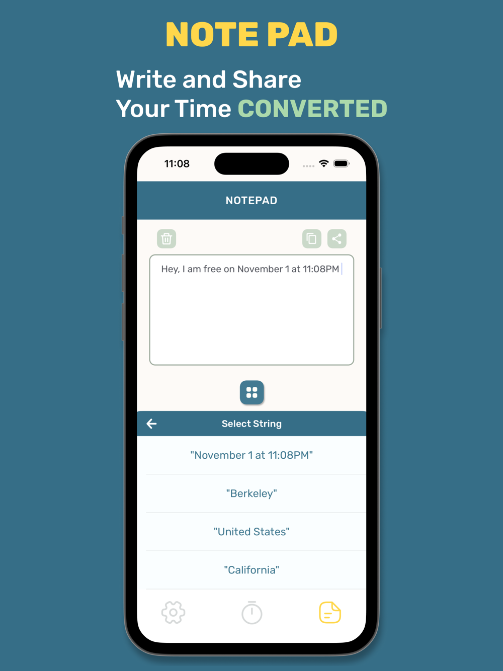 You can add up to 10 city time zones, and share any time info with the note pad feature.