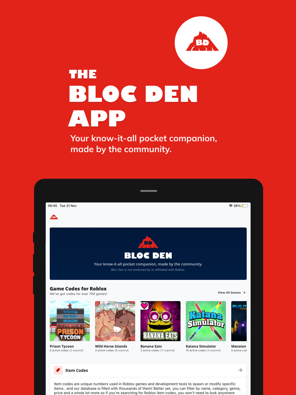 Bloc Den is not endorsed by, or affiliated with, Roblox and Roblox Corporation. This is a community-made app.