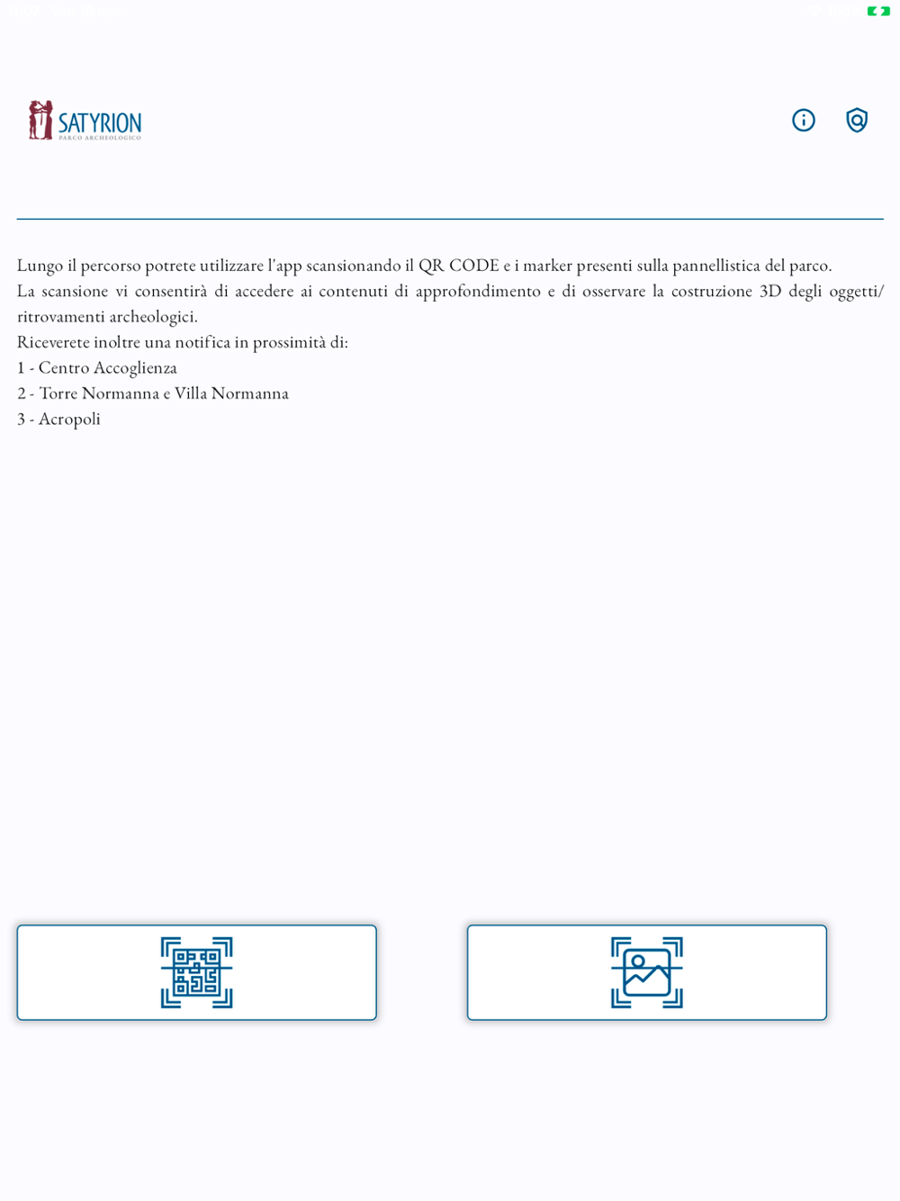 Inquadrando i qrcode e i marker presenti sul posto visualizza contenuti di tipo testo, audio, video e realtà aumentata.