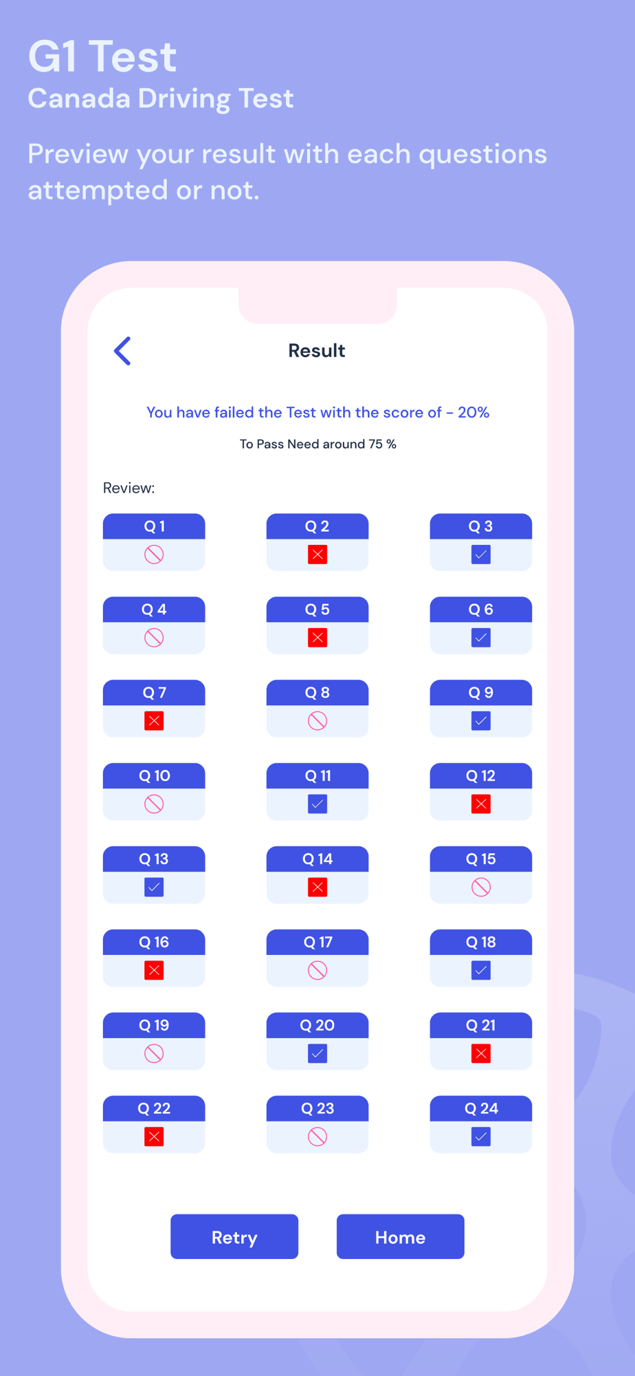 Our app's content is derived from the MTO Driver’s Handbook, offering you informative questions that are likely to appear on the G1 test. Receive comprehensive and immediate explanations for each question to help you prepare effectively.