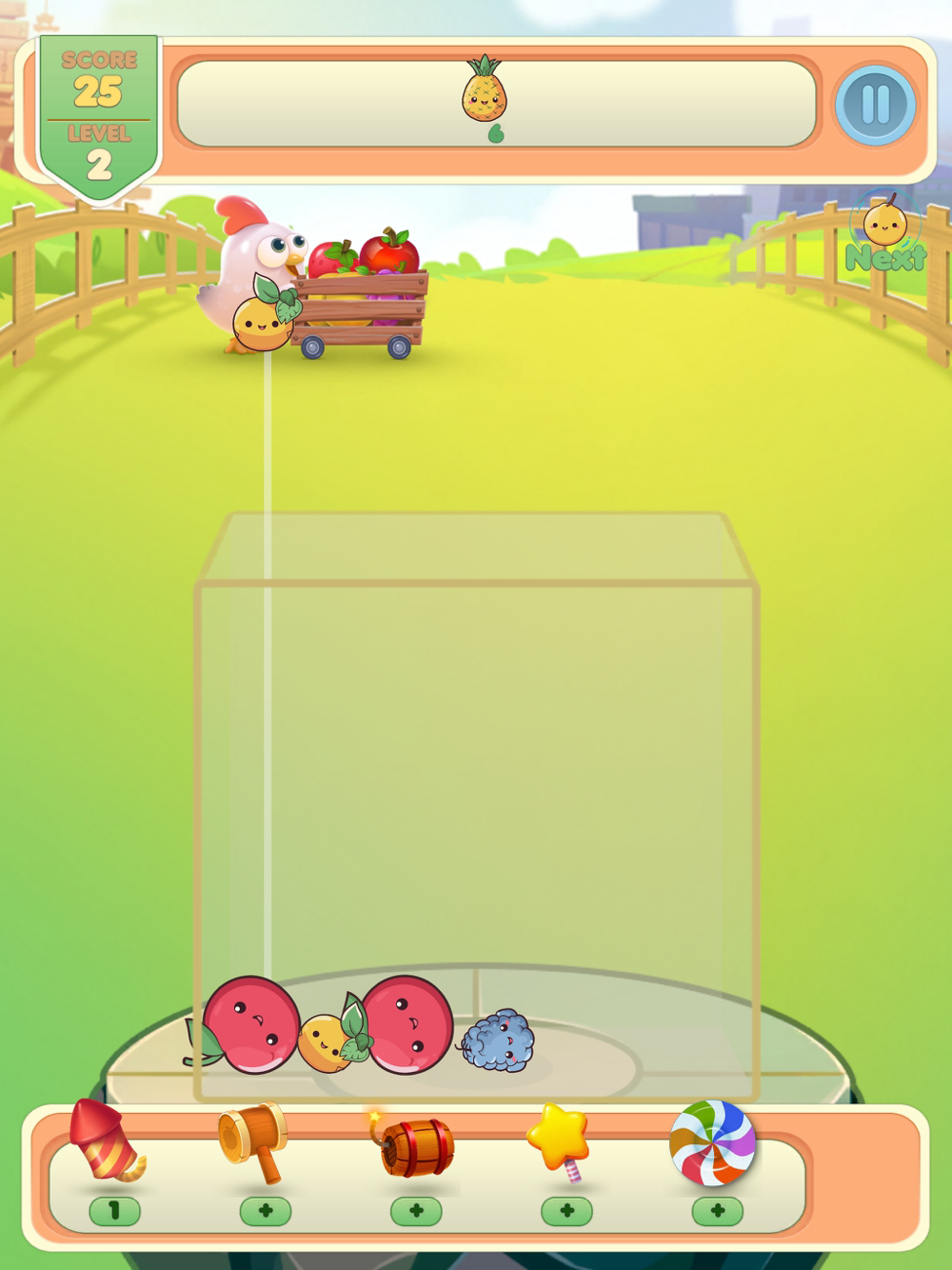 Benutze Gegenstände, um mehr Früchte platzen zu lassen und die höchste Punktzahl zu erzielen, also sei an der Spitze der Bestenliste