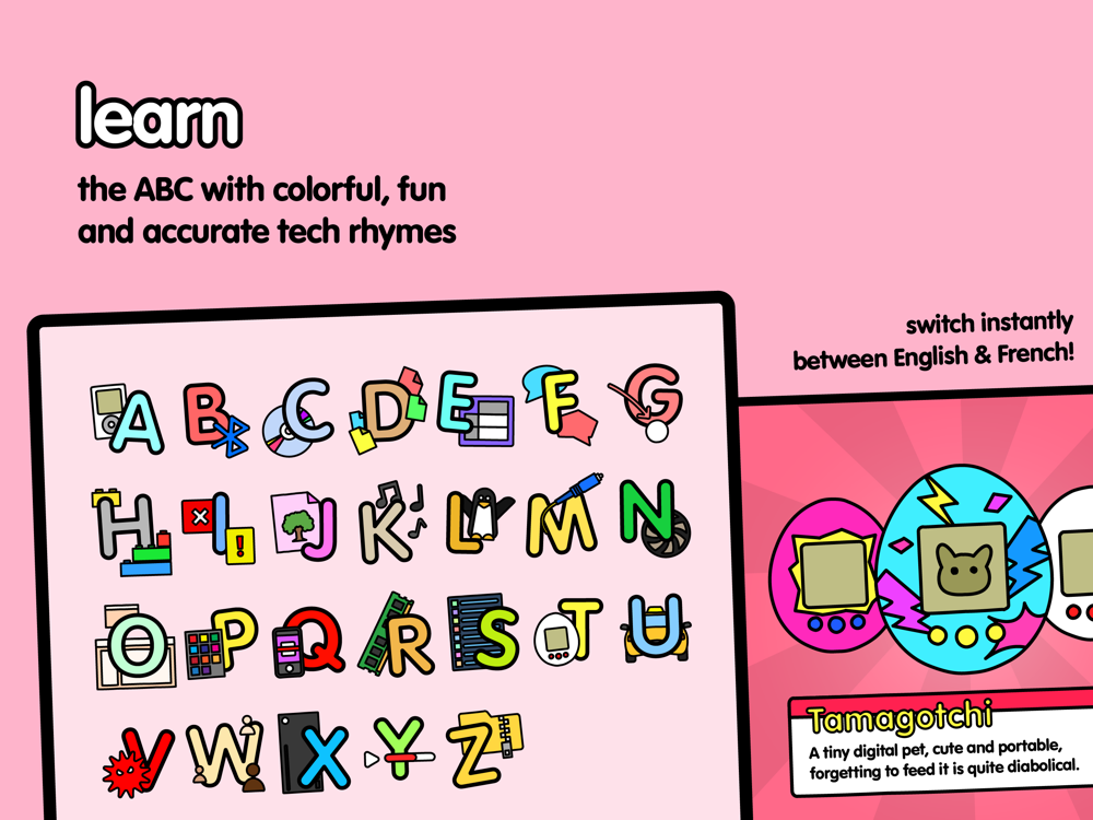 + Techno ABC, to learn the ABCs with tech rhymes and illustrations
