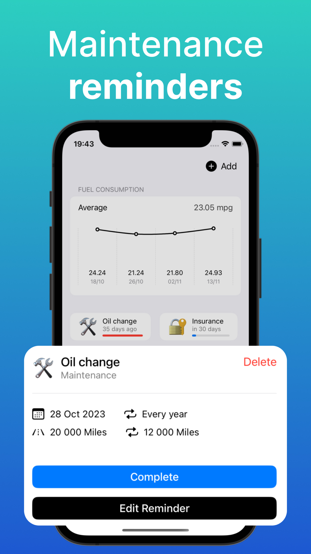 • Gas consumption tracker - Gallons (MPG), Imperial Gallons (MPG), Litres (l/100 km) and other imperial units.