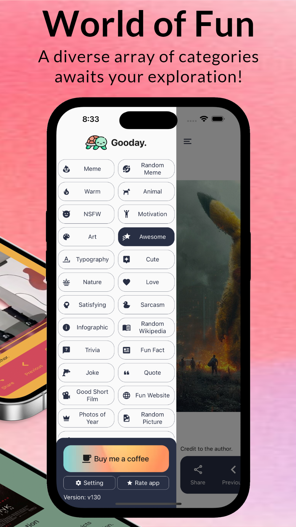 Embark on a daily delight with Gooday, a charming and dedicated app designed to bring a smile to your face every day! It's your go-to platform for a carefully curated collection of images and videos spanning a diverse range of categories. Unleash the power of positivity and entertainment right at your fingertips.