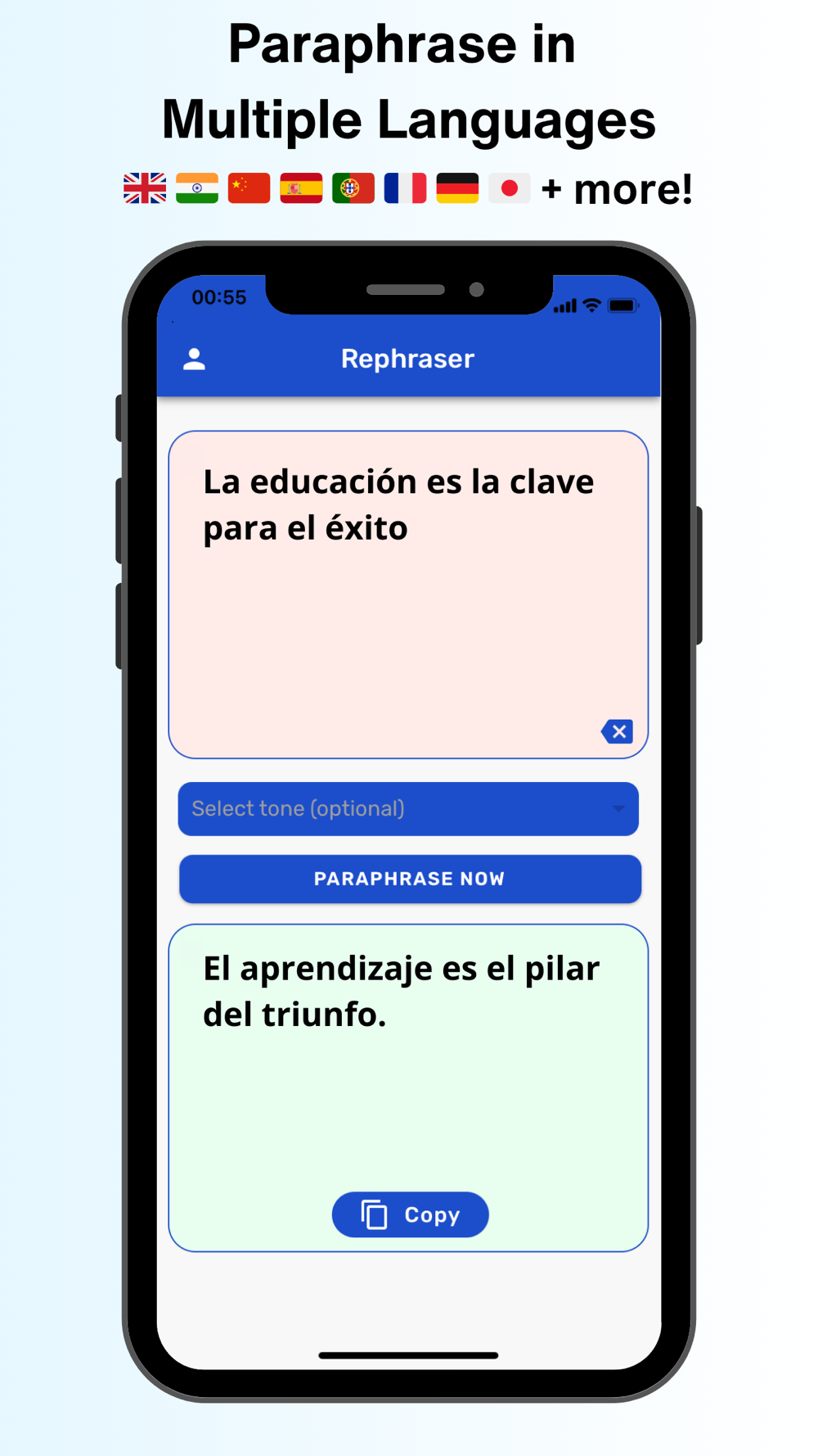 Input text in any language, select a tone, and instantly receive a rephrased version tailored to your needs. Perfect for rewriting, rewording & rephrasing content effortlessly, including essay, email, professional report etc. Get a fresh spin on your text everytime.