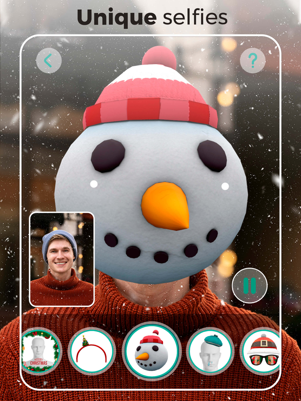 With our new 3D face filters app, you can apply high-quality filters in real time. With our 3D technology, the filters adapt perfectly to the contours of your face to achieve impressive results and look like you are at the North Pole.