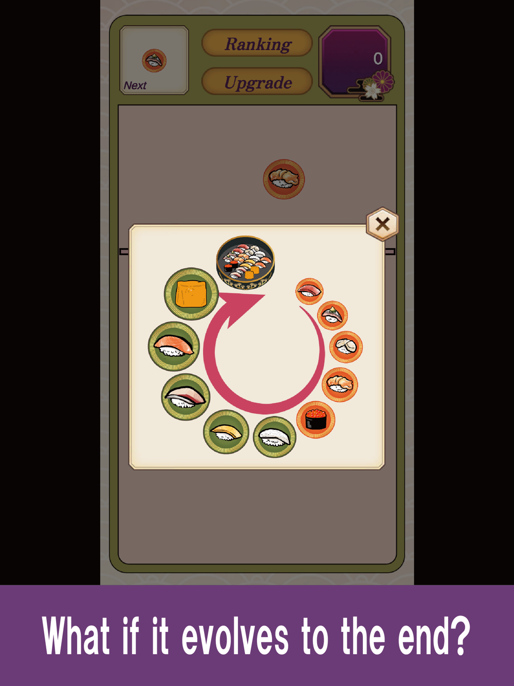 You can increase your score by evolving sushi.