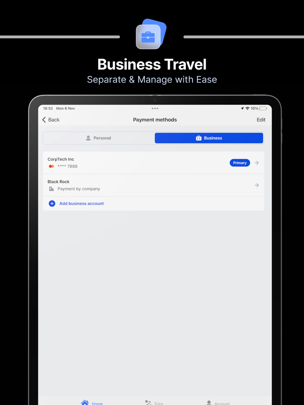 Streamline your business travel with CTG Ride. Our app allows you to link a corporate account, enabling you to easily separate business expenses, manage ride itineraries, and access detailed reports for seamless expense tracking. Say goodbye to the complexities of managing corporate travel.