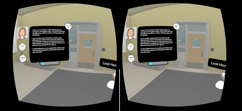 Trauma-Informed Spaces is an immersive VR experience that teaches about the principles of trauma-informed care and how they can be integrated into physical spaces. You can explore a virtual human services clinic from the perspective of a client seeking care. You can experience how environmental factors such as lighting, signage, seating choices and accessibility can impact potential clients. By exploring the environment you will get a better understanding of how changes to these factors can improve client experiences and treatment outcomes.