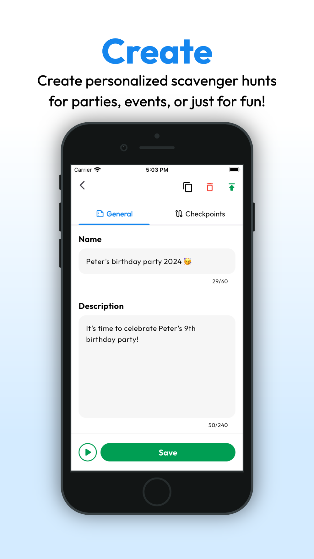 With Scavenger Hunt Plus you can play Scavenger Hunts made by others or create your own!