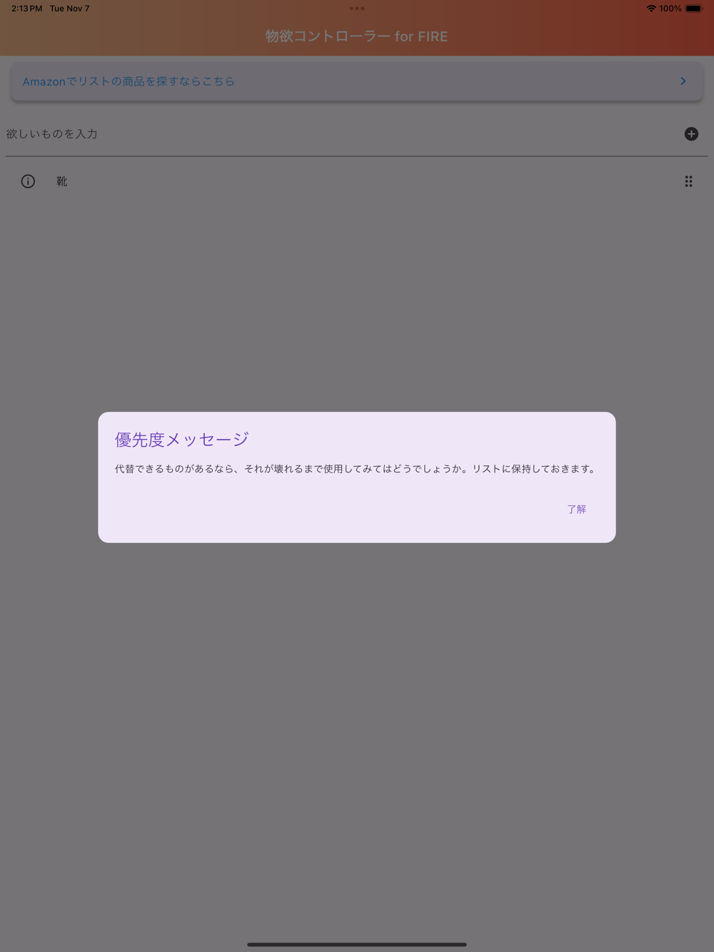 物欲コントローラーの目的は、ただ節約することだけではなく、価値あるものにのみお金を使うことで経済的自由を手に入れることです。アプリはあなたの物欲を可視化し、それを理性的なフィルターを通して見ることで、何が本当に必要で、何が衝動的な欲望によるものかを明らかにします。各アイテムを優先度順に並べ替える機能は、限られた予算内で最も重要な購入を決定するのに役立ちます。