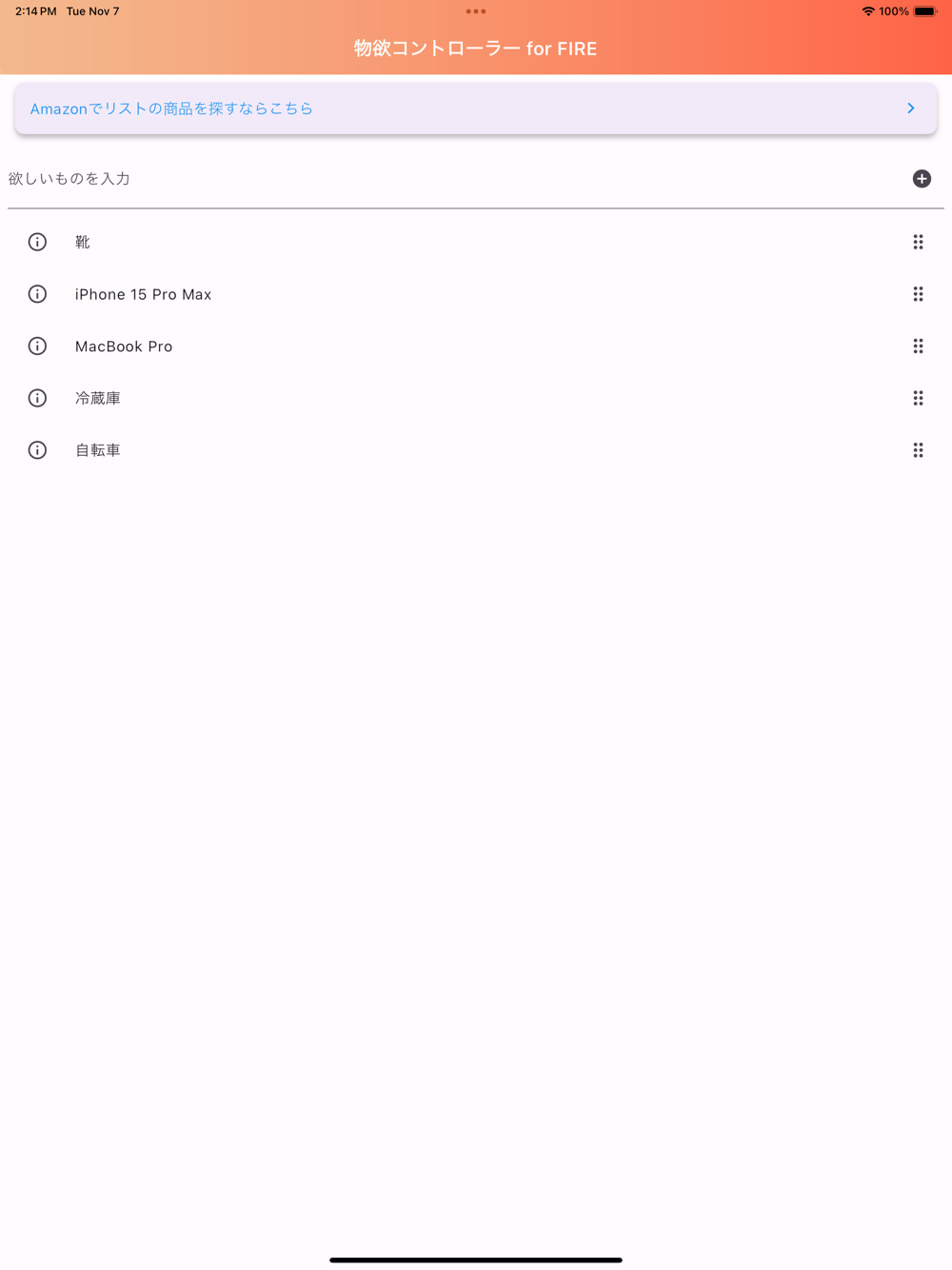 ・欲しいものリストの作成: 購入予定のアイテムをリスト化して管理できます。