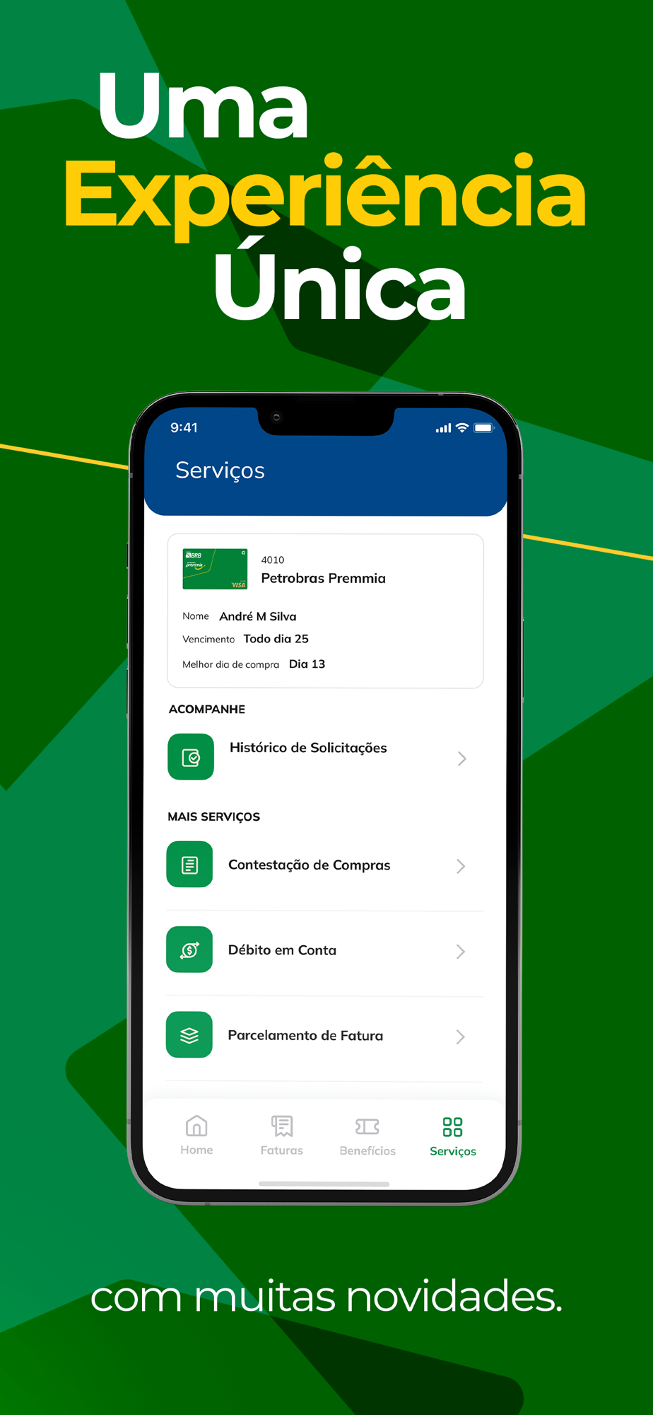 • Parcelamentos de Fatura (Plano Fácil, Crédito Rotativo e Parcelamento Automático);