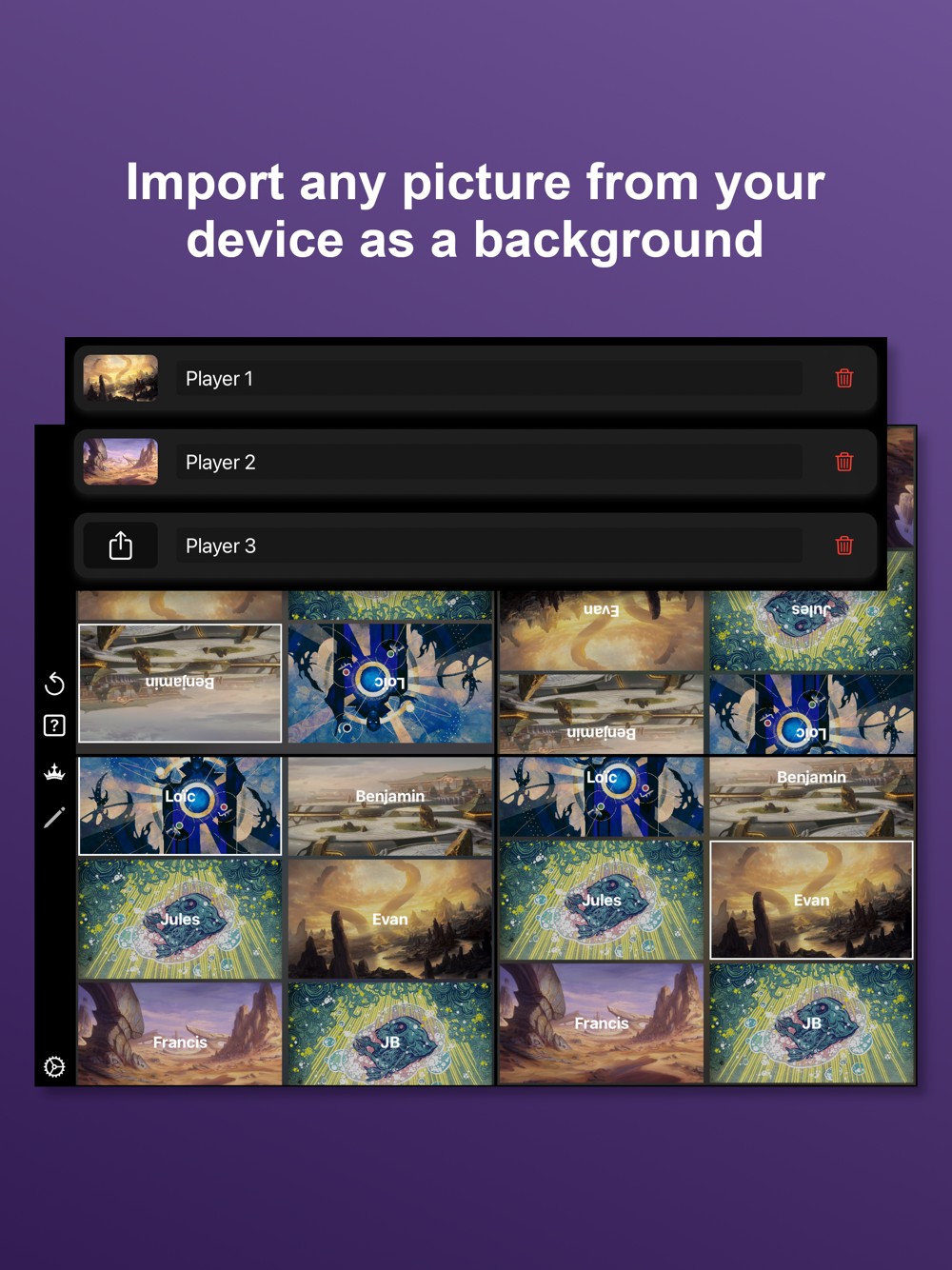 - Add your favorites background images for each player