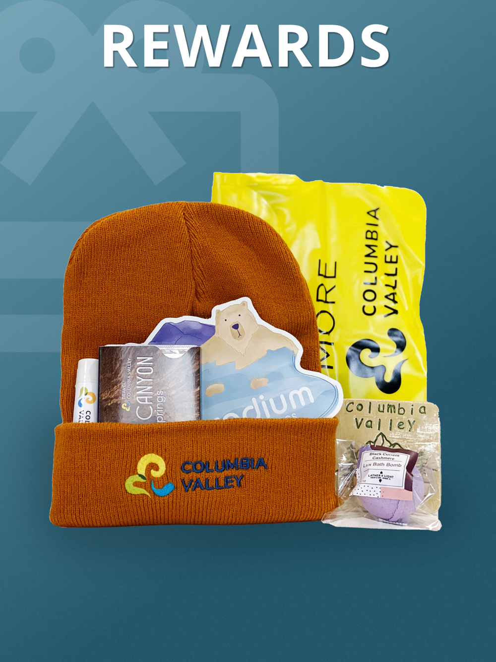 With an Explore Columbia Valley account, you can collect points, and redeem them for awesome prizes at Rewards locations throughout the Columbia Valley.
