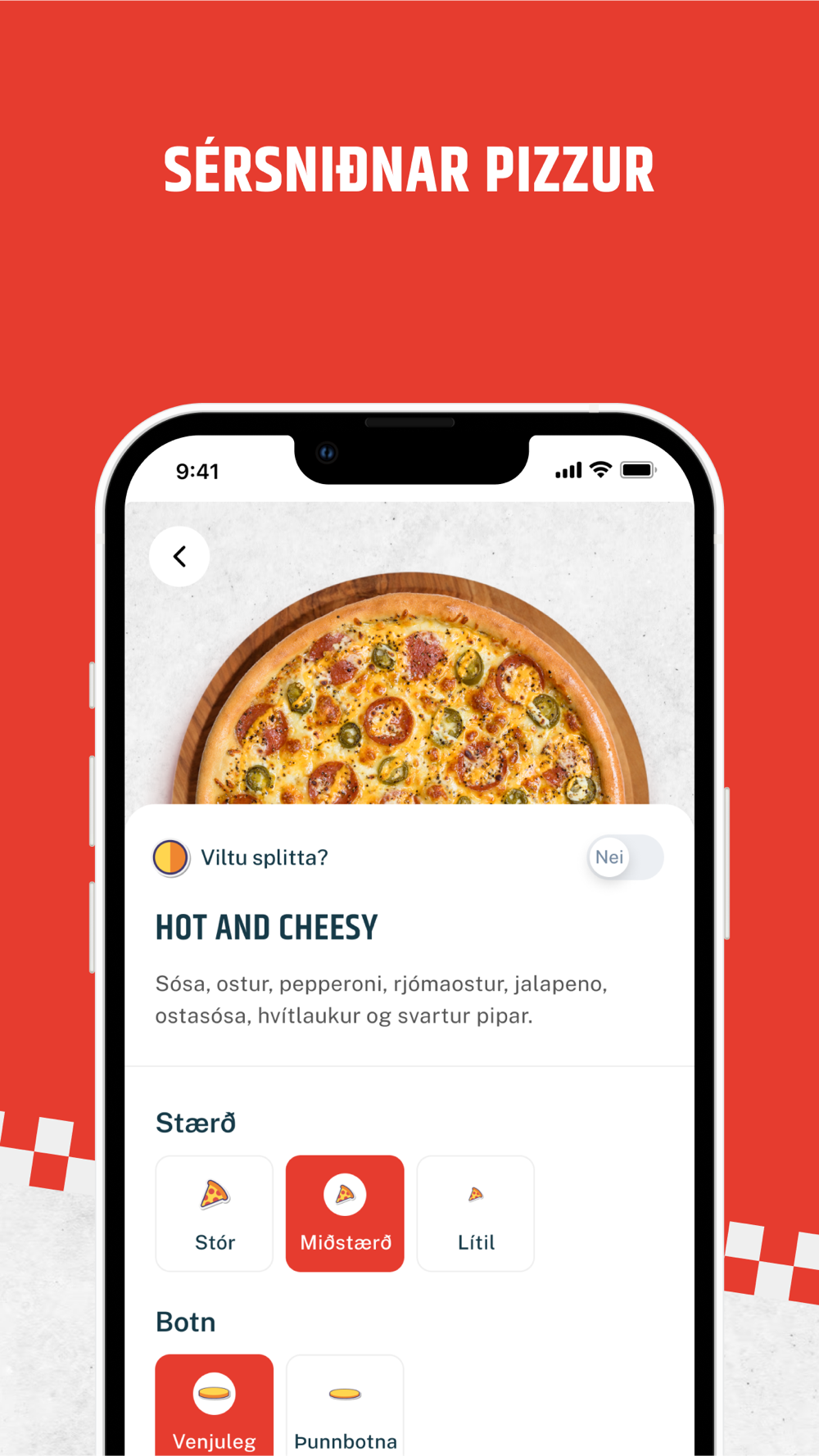 - Mikill fjöldi pizzutegunda og áleggja til að velja úr