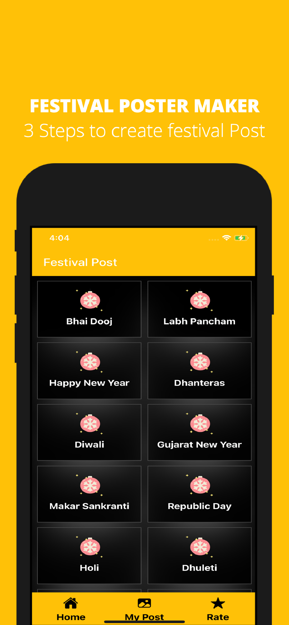 Also you can design Business Post, Politics, Politics Post, Daily Quotes, Motivation Quotes, Custom Birthday Post, Anniversary Post, Offer post, Wishes post etc. using this Festival Post Maker