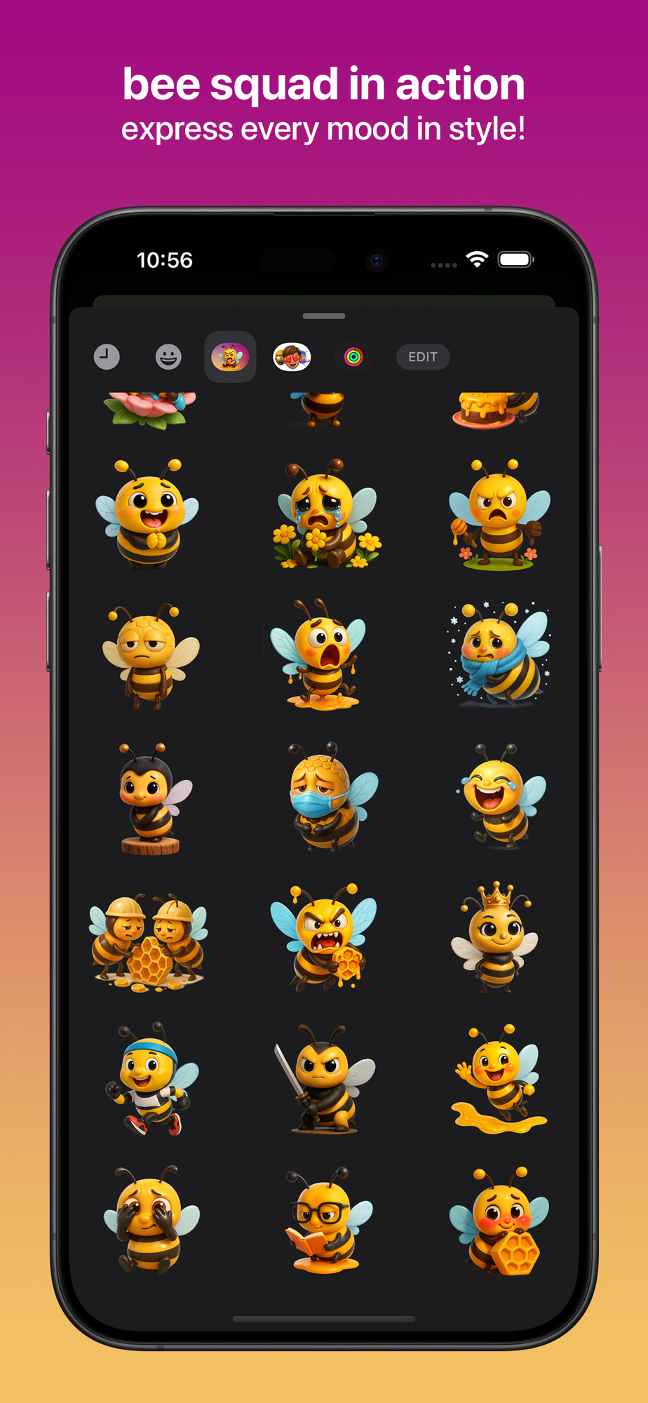 But these aren’t your average emojis. Each bee is uniquely designed with attitude, heart, and a whole lot of humor—bringing plastic-look charm and buzz-worthy flair to your everyday chats. From eye-rolls and love hearts to dance moves and dramatic meltdowns, these bees are always ready to express exactly how you feel.