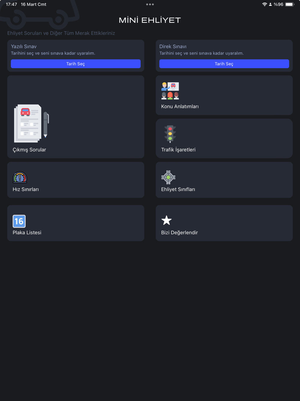 Eğitim eğlenceli olabilir mi? miniEhliyet’in mini sınav denemeleri ile bu mümkün! Kendi bilgi seviyenizi test ederek eksiklerinizi tespit edin ve her gün biraz daha geliştiğinizi hissedin.