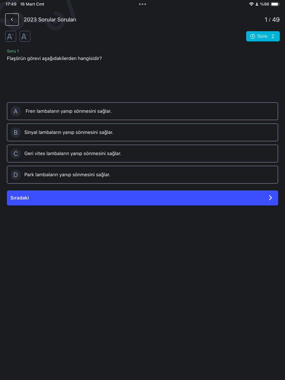 PRO üyelikteki özel sorularla sınavı geçme garantisi veriyoruz. Sınavda başarısız olursanız paranız iade! miniEhliyet ile riski unutun, sadece başarınıza odaklanın.