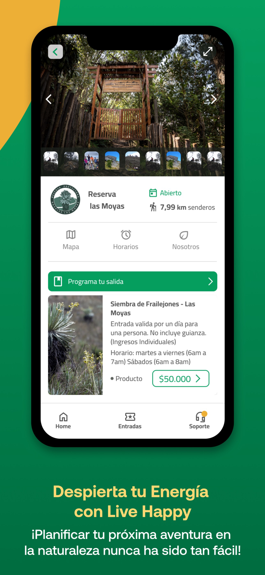 Livehappy es una innovadora aplicación diseñada para llevar tu experiencia ecoturística a un nivel superior. Ya no necesitas preocuparte por la compra de entradas o la planificación de tu próximo paseo por la naturaleza. Livehappy te ofrece un marketplace completo donde puedes adquirir entradas y planes ecoturísticos en diversas reservas y parques naturales. Nuestra aplicación te brinda beneficios exclusivos, como seguimiento en tiempo real de tu ubicación, acceso a puntos de interés mediante códigos QR. Por cada compra que realices en la app acumula puntos por contribuir a iniciativas sociales y ambientales, disfruta con propósito. Además, ofrecemos una sección de soporte para garantizar que tengas la mejor experiencia. No solo es una aplicación para los usuarios, sino que también facilita a los dueños de reservas y parques la gestión de su información y ofertas.
