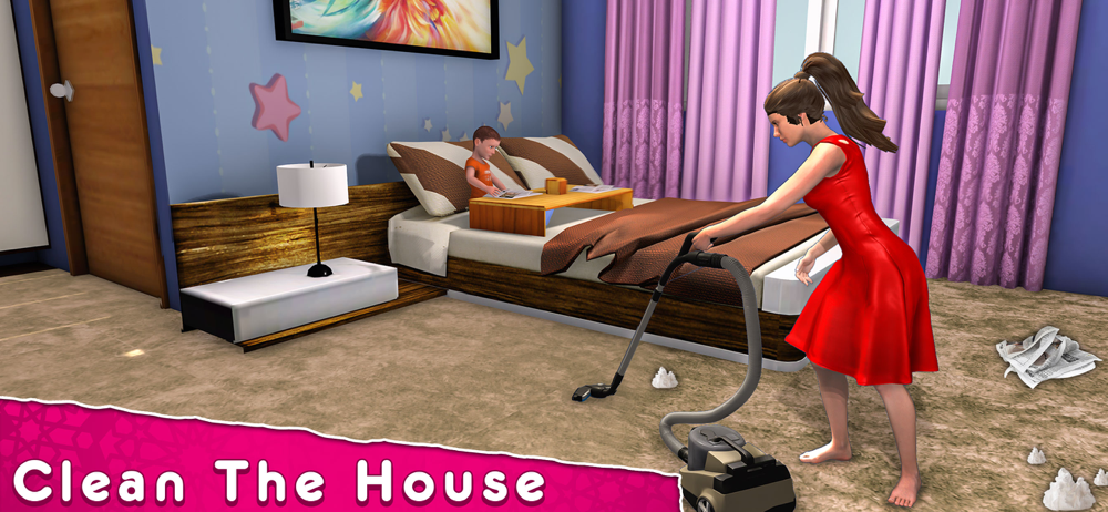 Welcome to the fascinating world of Mother Life with the Mother Simulator 3D: Mom Games! As a Mom and a wife, you have to manage happy family life. Experience being a mom and enjoy the best Mother Simulator 3D: Mom games! Welcome to Mother simulator 3d games, the virtual mom simulator 3d is up & ready to perform different tidy tasks in mom games like washing clothes, cooking, cleaning home, preparing breakfast & in mom simulator 3d mother games. Becoming a housewife is not easy in mom and dad games, show the world that you have the guts to become a supermom in the mom simulator. You aren't a single mom life so adopt household activities and daycare in Virtual Mother Games. The fun of life is watching the crawling of a newborn virtual baby in a yellow dress in mother simulator games and virtual mother games.