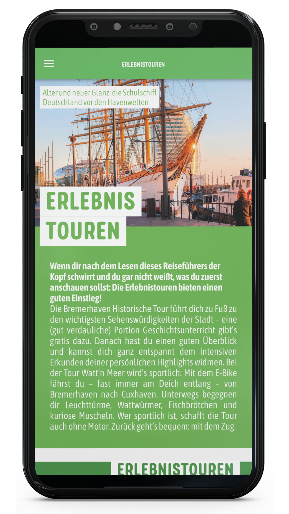 WER NACH BREMERHAVEN KOMMT, ist im besten Fall wind- und wetterfest, interessiert sich für Schiffe und mag Fischbrötchen. Um die "Havenwelten" mit dem Deutschen Schifffahrtsmuseum, dem Klimahaus, dem Auswanderermuseum und dem Zoo am Meer vollständig zu erkunden, brauchst du mehrere Tage – und hast noch lange nicht alles gesehen, was die kleine Großstadt an der Nordsee zu bieten hat! Stundenlang kannst du entdecken, flanieren, ausprobieren und jede Menge gesunde Seeluft schnuppern. Zum Shoppen geht’s in die „Bürger“ oder ins Outlet-Center, und kulinarisch findest du natürlich auch als Fischverweigerer dein Glück. Wer nach Bremerhaven kommt, entdeckt ein buntes, maritimes Schaufenster in die Welt!