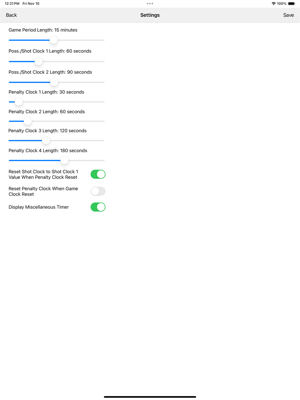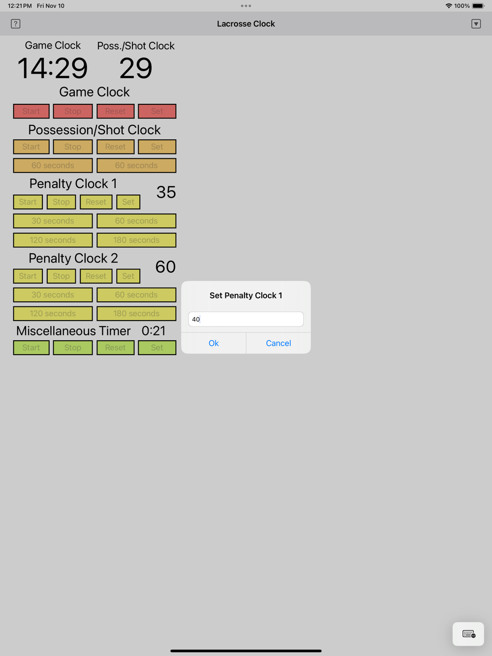 Track and manage a lacrosse game clock, possession/shot clock, and penalty clock all from the convenience of a mobile app.