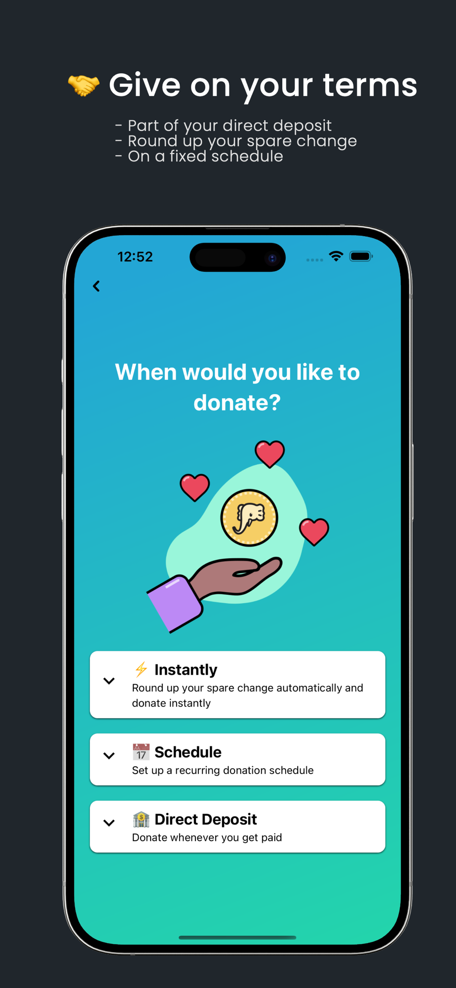 - Give you confidence your money is going to a good cause: we personally vet each non-profit we put on our platform. And we surface how we made our decision for each charity we chose. And if there’s a particular charity you’d like to donate your spare change to - that works too! We’ll show you the information we have, and let you make a decision.