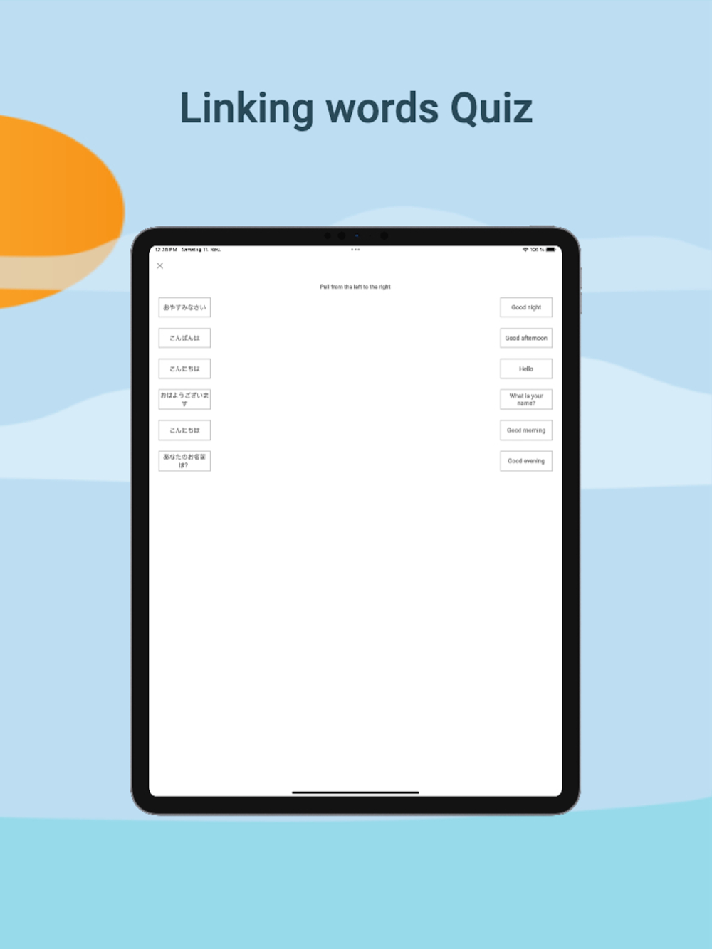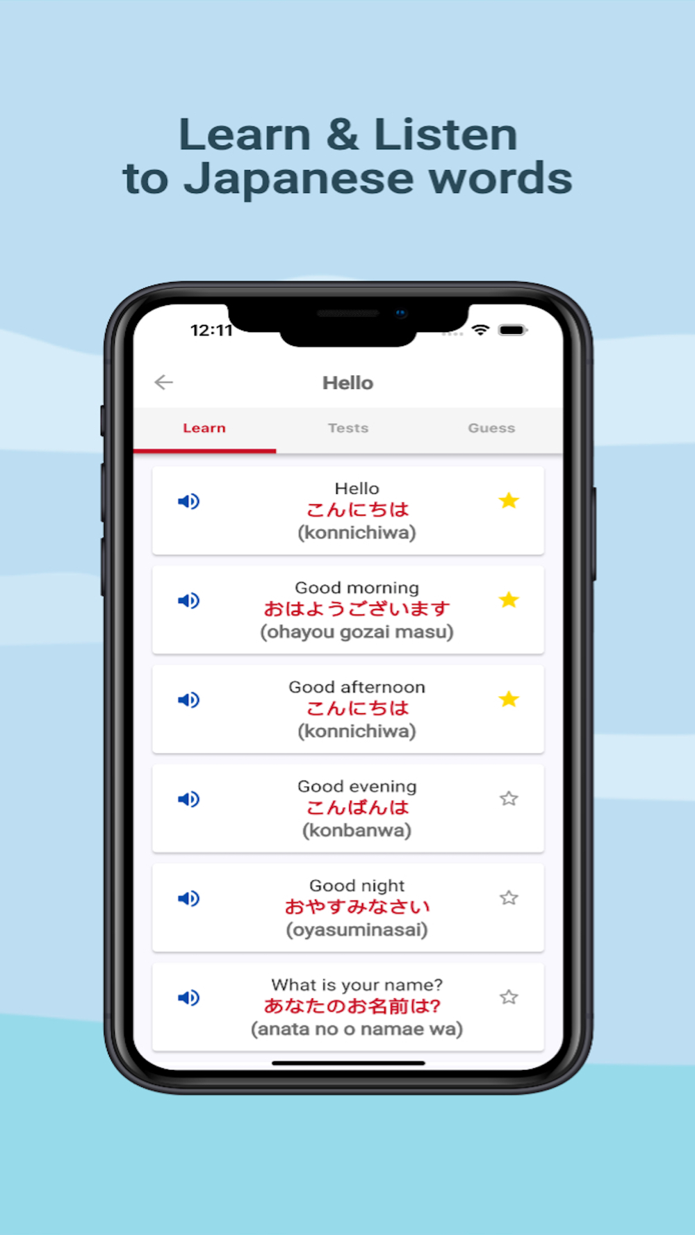 - Japanese grammar, vocabulary and daily conversation tests. You will gradually learn and confidently progress through your various levels.