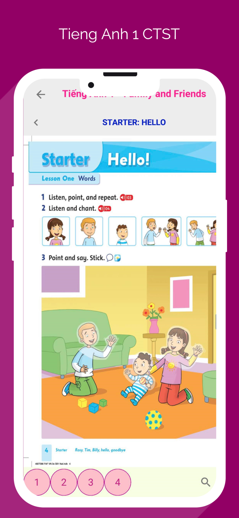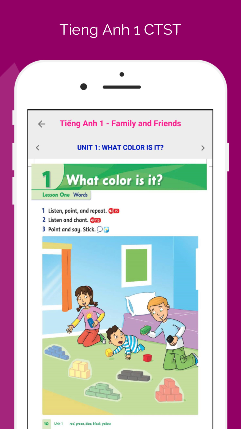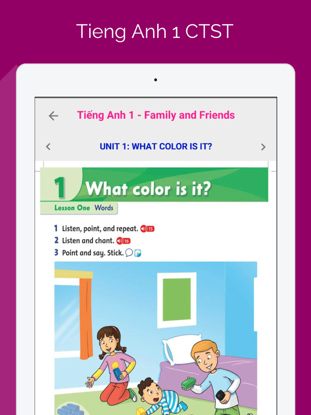 The Grade 1 English application simulates all listening exercises based on the English Grade 1 textbook series 'Chân trời sáng tạo'